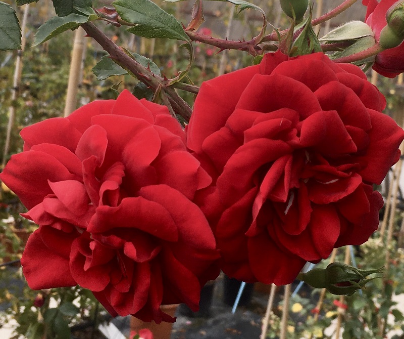 Fiorisce in corposi mazzi di rose doppie, rosso acceso, di grande impatto visivo, che si ripropongono fino a tarda stagione.