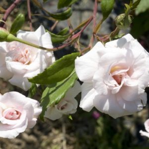 L’effetto globale è anche di maggiore eleganza rispetto alla rosa originaria, grazie ai peduncoli e ai sepali più allungati, che ne esaltano la delicata bellezza. I piccoli boccioli dalla perfetta forma di rosa Tea si aprono per tutta la stagione in mazzi rosa perla, su vegetazione verde chiaro, con foglie allungate.