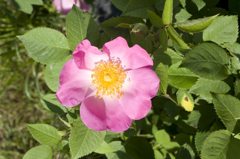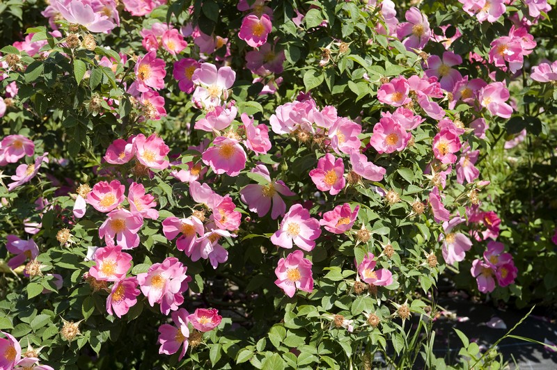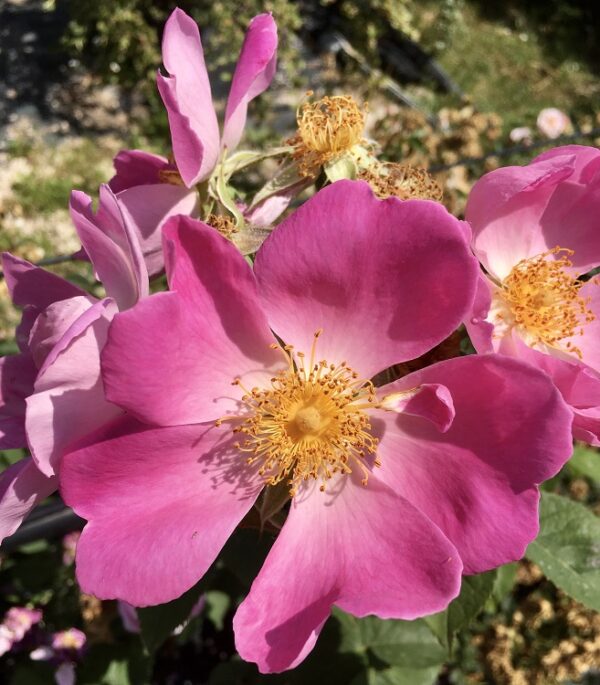 A maggio si ricopre di grandi coppe semplici che si chiudono la sera – i fiori rosa intenso con centro bianco e vistosi stami oro, dolcemente profumati, si trasformano poi in grosse bacche rosso-arancio molto durevoli.