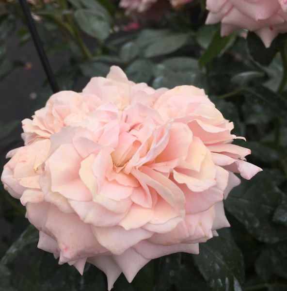 Produce mazzetti di fiori molto doppi, nostalgici, dai piccoli petali rosa crema, più intenso col fresco, e dal tenue profumo.