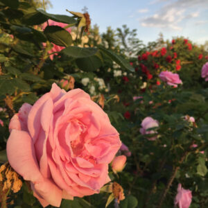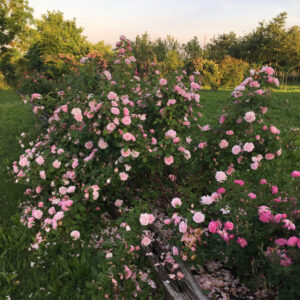 Come la “madre”, anche KH è priva di spine e molto vigorosa, con foglie lievemente più lucide e chiare, e rami nuovi rossastri – si tratta di rose estremamente attive nello sviluppo e le vegetazioni tenere sempre presenti sono molto suscettibili all’oidio, per cui è bene trattarle con anticrittogamici a base di zolfo a inizio primavera e fine estate.
