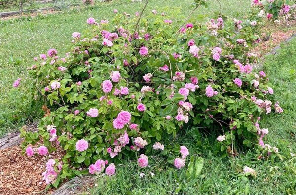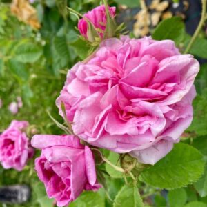 Rosa damascena di eccezionale bellezza, che forma un cespuglio lussureggiante, armonioso e sano.