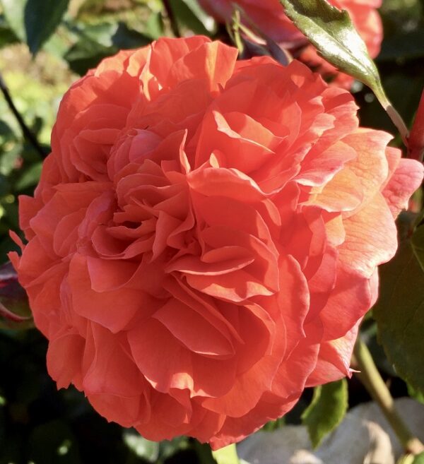 La pianta è estremamente sana e vigorosa, e rifiorisce in mazzi di rosette stradoppie, dal bel colore arancio chiaro, che assume sfumature rosate in sfioritura.