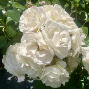 Forma un cespuglio arrotondato su cui sbocciano corposi mazzi di coppe albicocca chiarissimo, che sbiadiscono sino al bianco. I petali si raccolgono intorno ad un ciuffo di ricchi stami centrali che attraggono gli insetti impollinatori, ed emanano un leggero profumo.